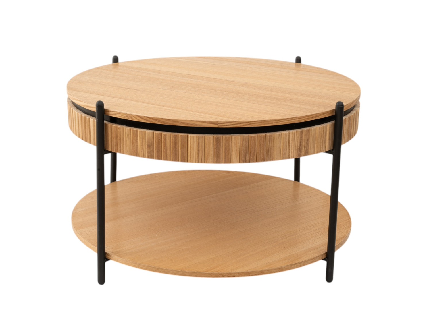 ΤΡΑΠΕΖΙ ΣΑΛΟΝΙΟΥ ΣΤΡΟΓΓΥΛΟ ΜΠΕΖ ΜΕ ΜΕΤΑΛΛΙΚΑ ΜΑΥΡΑ ΠΟΔΙΑ ΚΑΙ ΡΑΦΙ 80Χ80Χ40ΕΚ