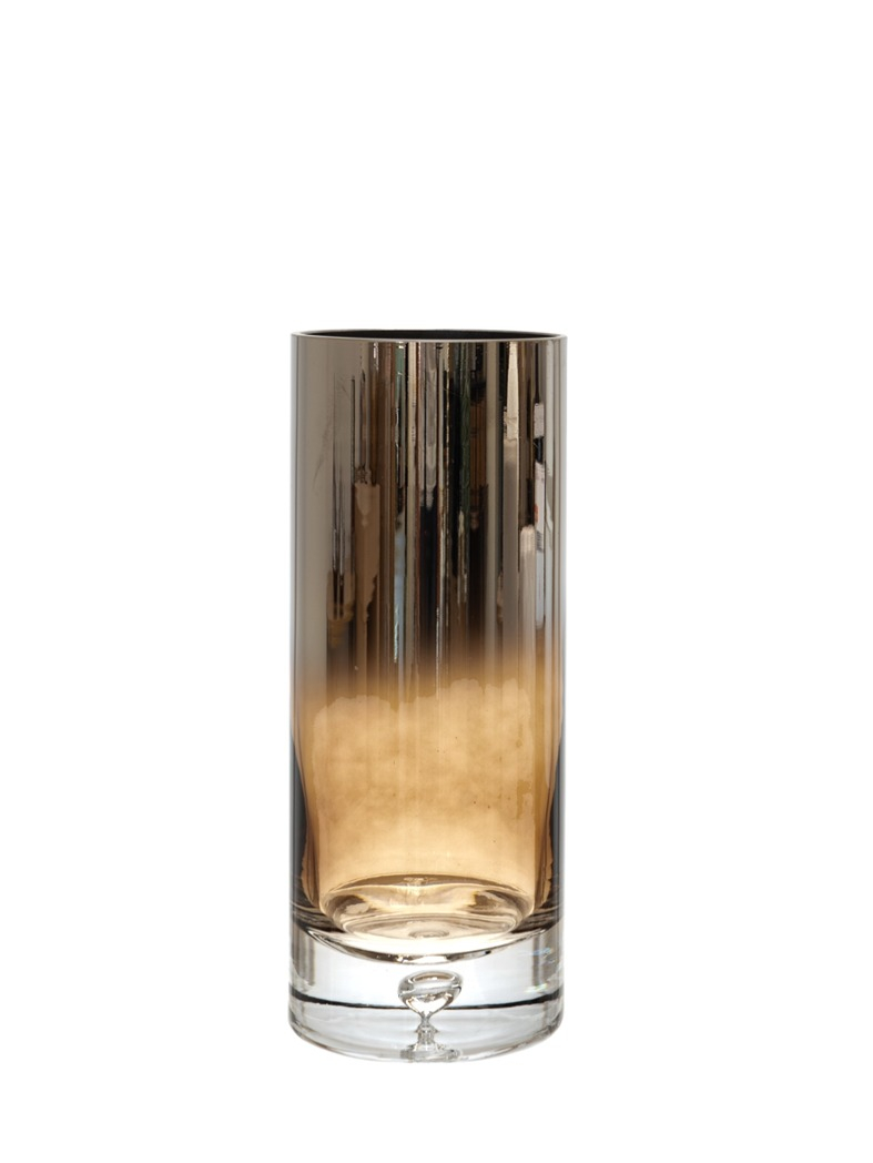 ΧΕΙΡΟΠΟΙΗΤΟ ΒΑΖΟ ΦΥΣΙΤΟ ΑΠΌ ΓΥΑΛΙ ΚΥΛΙΝΔΡΟΣ ΜΕ ΜΠΙΛΙΑ ΑΣΗΜΙ ΚΑΦΕ 12Χ12Χ30ΕΚ