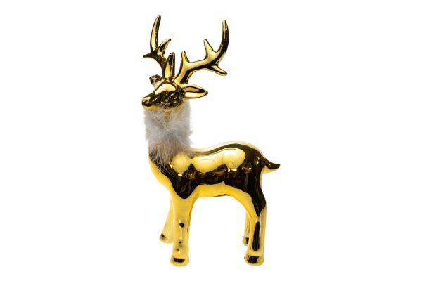 ΧΡΙΣΤΟΥΓΕΝΝΙΑΤΙΚΟΣ ΔΙΑΚΟΣΜΗΤΙΚΟΣ ΤΑΡΑΝΔΟΣ ΚΕΡΑΜΙΚΟΣ ΧΡΥΣΟΣ ΜΕ ΠΟΥΠΟΥΛΟ ΛΕΥΚΟ 13,5Χ8,3Χ23,7ΕΚ